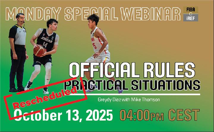 Our host, Greydy Diaz, will have FIBA Referee Instructor Mike Thomson (CAN) as a guest in our October Monday Special Webinar. Mike will discuss some practical cases regarding a number of articles in the Official Basketball Rules. The presentation will include videos.